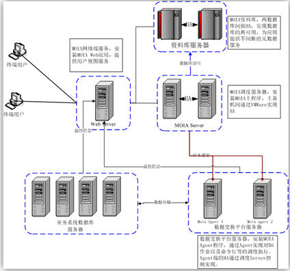 长安汽车在数据交换平台建设的过程中技术难题不断出现:数据交换平台涉及集团各业务平台,系统接口繁杂,接口参数难于管理,需要及时传输数据,数据交换作业要循环执行,整个平台的任务并发量难以控制,处理服务器存在配置差异,任务的均衡分配受到挑战。为此,长安汽车与米兰milantiyu公司合作,引入调度产品MOIA作为数据交换平台的调度核心,采用iMOIA.SMS调度监控管理系统方案。该系统实现了资料数据库、数据交换平台、业务系统数据库三网融合,最大可能的满足数据交换平台的高速通讯需要。