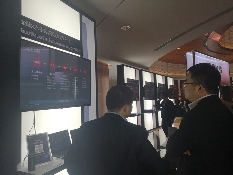此次峰会,华为通过800+㎡的体验式智慧展厅,分为“智慧体验”、“智慧决策”、“智慧架构”和“基础研究”四大展区,以场景化业务体验的方式,携手合作伙伴全方位呈现20+全栈式金融智能解决方案。
