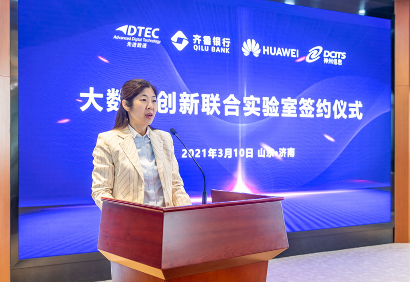 齐鲁银行副行长葛萍女士在“大数据创新联合实验室”揭幕仪式致辞中表示,齐鲁银行在数字化转型发展的大潮中,始终坚持以科技手段支撑“服务地方经济、服务中小企业、服务城镇居民”的业务发展目标,将科技赋能作为创新发展的重要驱动力,将数字化转型纳入全行发展战略规划,并确定了“业务线上化、服务场景化、决策智能化、系统平台化、科技敏捷化”的数字化转型目标。期望大数据创新联合实验室将成为连接齐鲁银行与大数据研发企业及研究机构的平台,为全行业务发展和数字化转型注入新的动能,打造成省内,乃至全国中小银行大数据生态合作的典范。