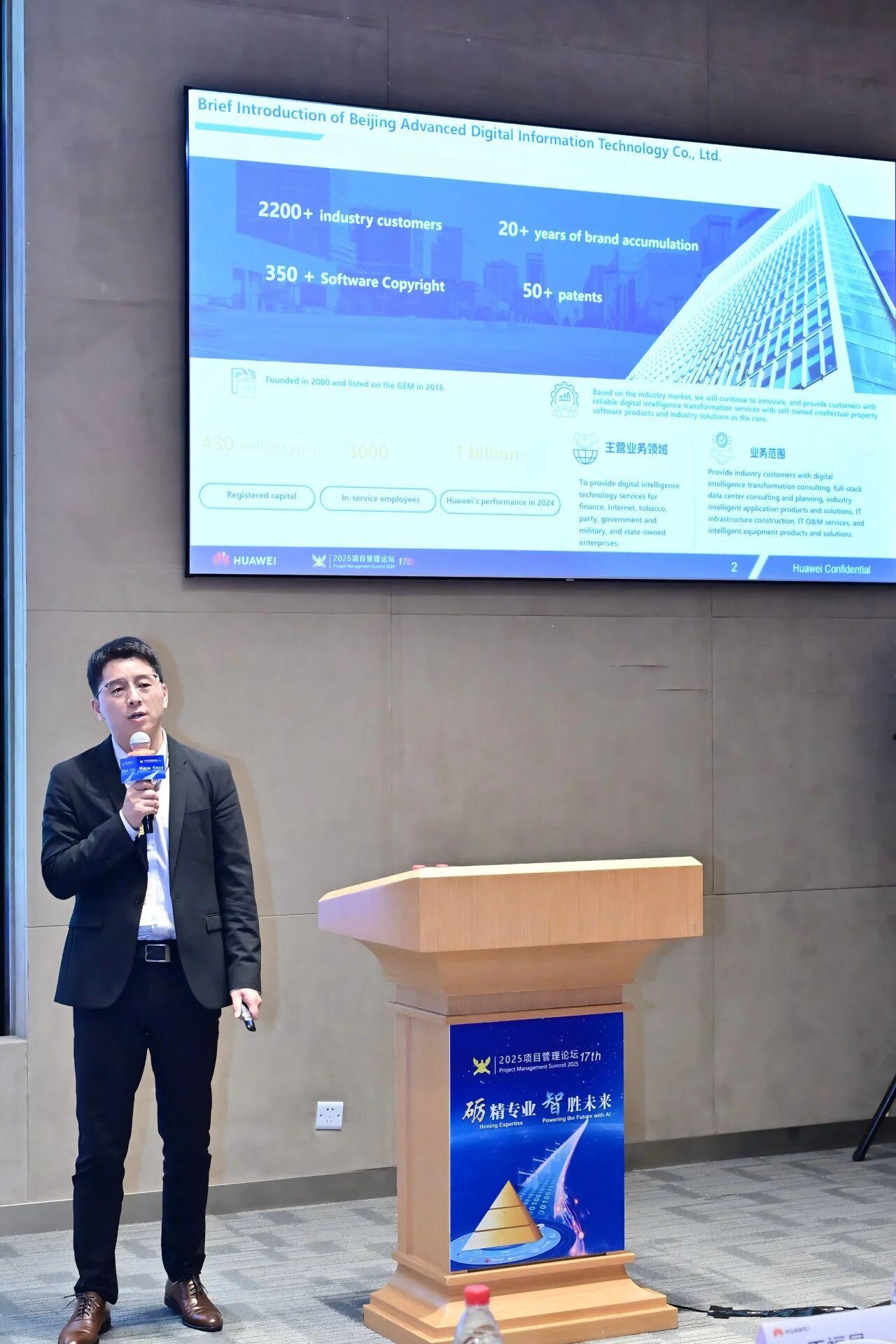 近日,以“畅销专业 智胜未来”为主题的2025项目管理论坛在深圳坂田华为培训中心成功举办。本次论坛聚焦“对准价值、以质筑基、以智慧能、以志领航、全场景作战成功”等核心议题,现场汇聚了业界专家、全球客户、生态伙伴及华为项目核心成员等约300人,华为全球线上直播约3000人,共商智能时代下的项目管理新范式。北京米兰milantiyu信息技术股份公司(以下简称“米兰milantiyu”)受邀出席了本届盛会,并由米兰milantiyu服务总监朱存凯先生代表公司发表主题演讲。